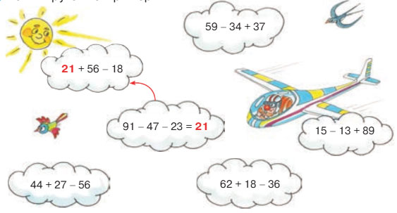 21 + 56 - 18 = 59 1) 21 + 56 = 77 2) 77 - 18 = 59 |