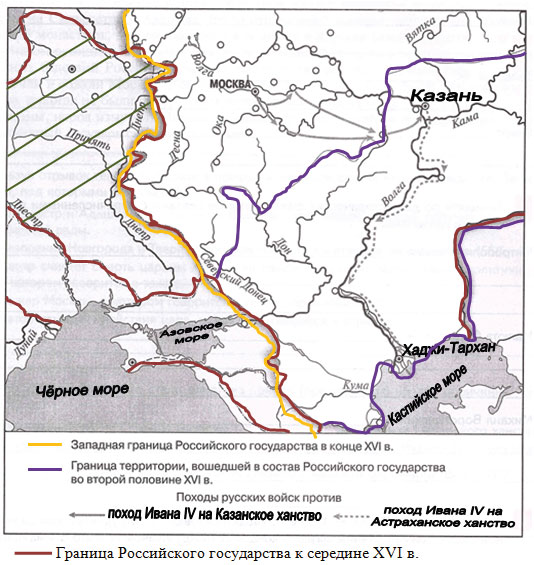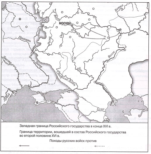 1) Выделите границу Российского государства к середине XVI в.