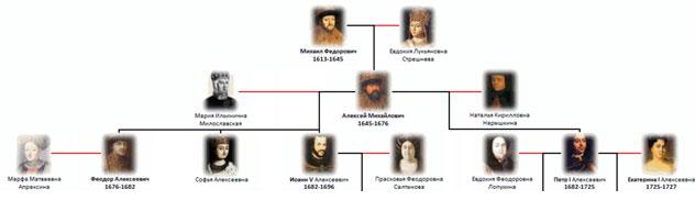 8. Составьте генеалогическое древо первых Романовых (XVII в.).