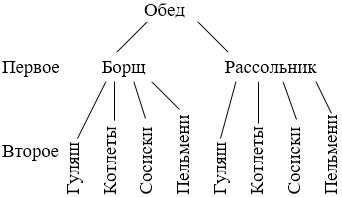 От каждой такой ветви идут ещё по четыре ветви ко вторым блюдам.
