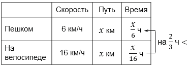 От фермы до станции Пётр может доехать на велосипеде или дойти пешком. Идёт он со скоростью \(6\) км/ч, а на велосипеде едет со скоростью \(16\) км/ч. Каково расстояние от фермы до станции, если на велосипеде Пётр тратит на этот путь на \(40\) мин меньше, чем пешком?