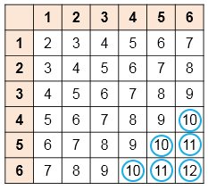 \[ (4,6), (5,5), (6,4) \Rightarrow 3 \text{ исхода} \]