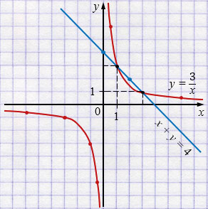 б) прямая \(x+y=4\) и гипербола \(y=\dfrac{3}{x}\);