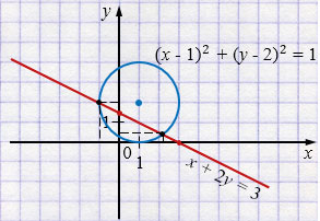 \(\begin{cases} (3-2y-1)^2+(y-2)^2 = 4,\\ x = 3-2y\end{cases}\)