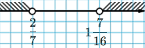 \(\small\begin{cases}y>1\dfrac{7}{16}, \\ y < \frac{2}{7} \end{cases}\)