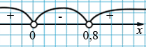 Ответ: \(x\in(-\infty; 0) \cup(0,8; +\infty).\)