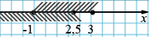 \(\begin{cases}-1 \le x \le 3 \le 0,\\ x \le 2,5\end{cases}\)