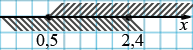 \( \begin{cases} x\le 2,4, \\ x\ge 0,5 \end{cases} \)