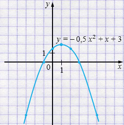 \(y=-0{,}5x^2+x+1{,}5\) - парабола.