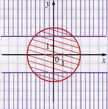 Поэтому нужно взять только те точки круга, которые находятся в областях \( x\geq 1 \) или \( x\leq -1. \)