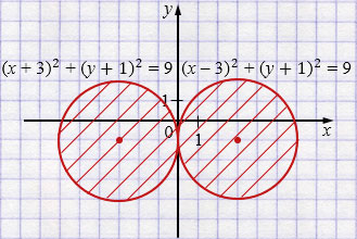 б) \(x^2+y^2-6x+2|y|\leq -1.\)