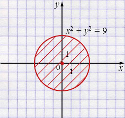 задаёт круг радиуса \(3\) с центром в начале координат вместе с границей.