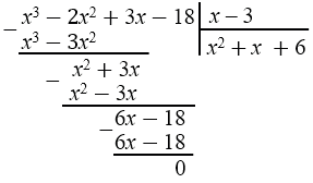 \( x^3-2x^2+3x-18=(x-3)(x^2+x+6) \)