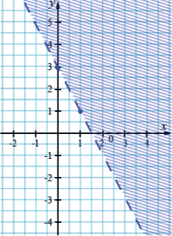 Прямая \(y=-2x+3\) разделит плоскость на две полуплоскости, при этом неравенством \(4x+2y>6\) задается множество точек координатной плоскости, расположенных выше прямой \(y=-2x+3\), т.е. открытая полуплоскость (полуплоскость без граничной прямой). Чтобы показать, что прямая \(y=-2x+3\) не принадлежит полуплоскости, на рисунке ее будем изображать штриховой линией.