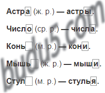 Подбери и запиши пять имён существительных в единственном числе, определи род, выдели окончания. Затем запиши их во множественном числе, выдели окончания.