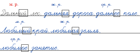 Прочитайте. Составьте словосочетания, согласуя каждое имя прилагательное с каждым именем существительными. Запишите словосочетания. Определите род имен прилагательных, выделите их окончания.