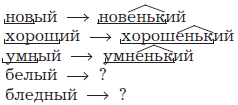 Прилагательные с каким значением образовались с помощью суффиксов -еньк-, -оват-, -еват-? Разбери эти слова по составу.