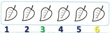 Считая слева направо, закрась третий лист зелёным цветом, а шестой - жёлтым.