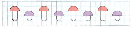 Раскрась шляпки грибов так, чтобы менялся ещё и их цвет.