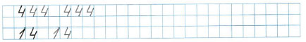 На верхней строке написаны три цифры 4 в каждой клеточке. Затем, отступив вправо 1 клеточку, написали еще три цифры 4.