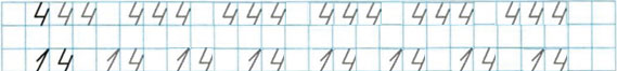 На нижней строке написаны цифры 1 и 4 в каждой клеточке. Затем, отступив вправо 1 клеточку, написали еще раз цифры 1 и 4.