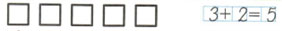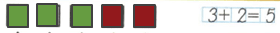 3 + 2, значит, раскрашиваем 3 зелёные фигуры и 2 красные.