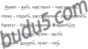 Прочитай, устно поставь вопрос к каждому глаголу. Образуй от каждого глагола неопределённую форму. Подчеркни орфограммы.