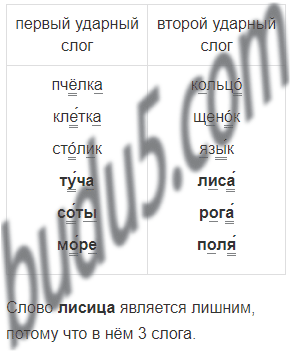 Какое слово лишнее? Почему? Подчеркни буквы ударных гласных двумя чертами, безударных – одной чертой.