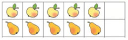Нужно убрать 1 грушу.  Теперь груш столько же, сколько яблок. Яблок столько же, сколько груш. Поровну.