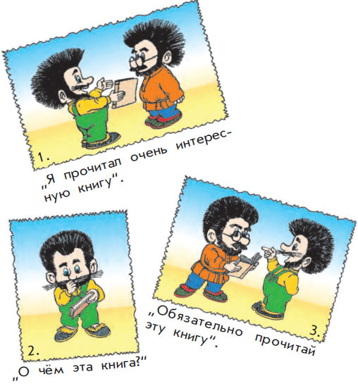 Рассмотри картинки. Что делают Афанасий и дедушка Фёдор на каждой картинке? С какой целью они говорят?