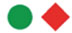 Но первая фигура должна быть зелёная, потому что их больше. Начнём с зелёного круга.