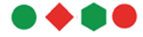 После красного квадрата мы не можем поставить красную фигуру и не можем поставить квадрат. Значит, третья фигура будет зелёный многоугольник.