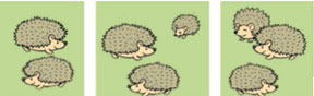 Сначала был 1 ёжик. Потом к нему подбежал ещё 1 ёжик. Всего стало 2 ёжика.