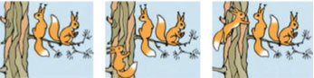 1 красный кружок обозначает, сколько белочек прибежало