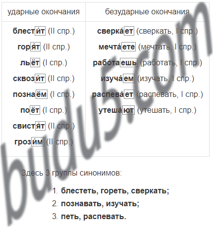 Выпиши в один столбик глаголы с ударными личными окончаниями, в другой – с безударными. Выдели окончания. Определи спряжение глаголов.