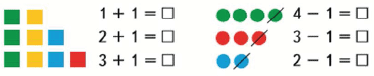 В правом столбике фигурки зачёркиваются, значит, их убирают, и фигурок становится меньше. Такие действия записывают знаком минус.