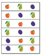 Первая и в той и в другой строке груша, а слива и яблоко меняются местами.