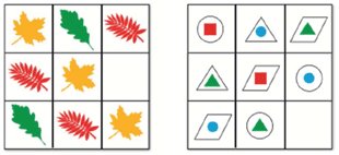Какую фигуру надо нарисовать в свободной клетке каждой из них, чтобы все строки и столбцы были разными?