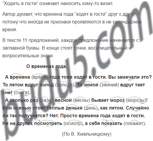Как ты понимаешь выражение ”ходить в гости”? Почему автор текста думает, что времена года ходят друг к другу в гости?