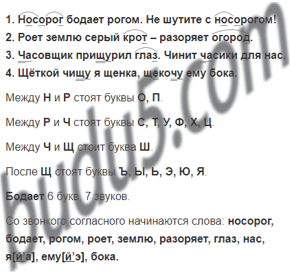 1. Носорог бодает рогом. Не шутите с носорогом! 2. Роет землю серый крот – разо-