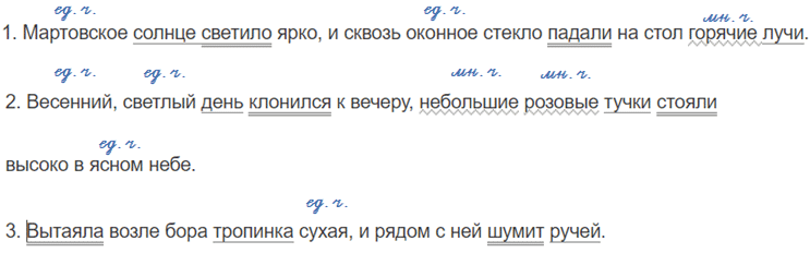 3. Вытаяла возле бора тропинка сухая (ед. ч.), и рядом с ней шумит ручей. (М. Пришвин)