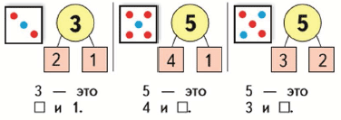 На рисунках показан состав чисел 3 и 5.