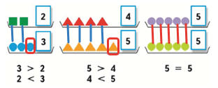 Узнаем, какими знаками в математике обознача­ют слова: больше, меньше, равно.