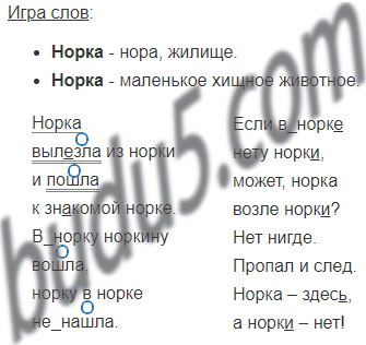 Прочитай стихотворение А. Шибаева. Какими словами играет поэт? Уточни в словаре значение слова норка. Спиши. В первом предложении подчеркни главные члены.