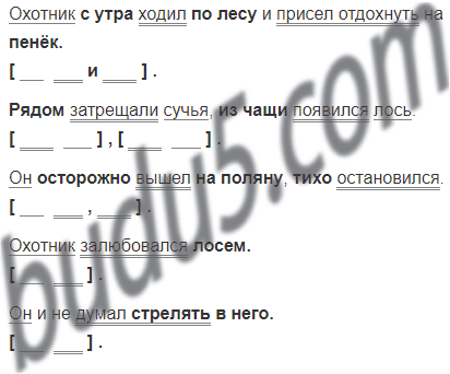 Охотник ... ходил ... и присел отдохнуть на ... . ... затрещали сучья, ... появился лось. Он ... вышел ..., ... остановился. Охотник залюбовался ... . Он и не думал ... .