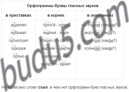 | Орфограммы-буквы гласных звуков | ||