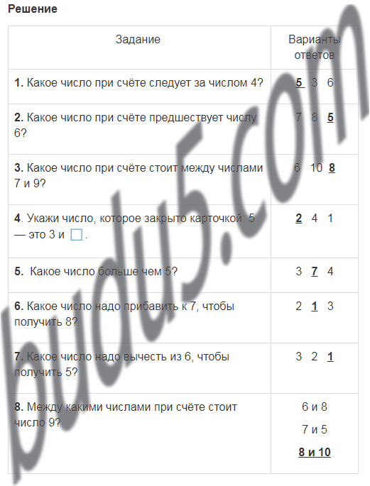 3. Какое число при счёте стоит между числами 7 и 9? |