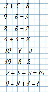 | 3 + 5 | 8 - 6 | 10 - 7 | 2 + 5 + 3 |