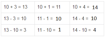13 - 3 = 10 11 - 1 =  14 - 4 =