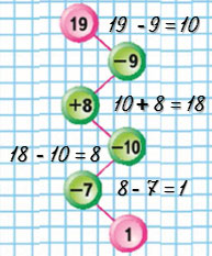 19 - 9 = 10, потому что останется всего 1 десяток.